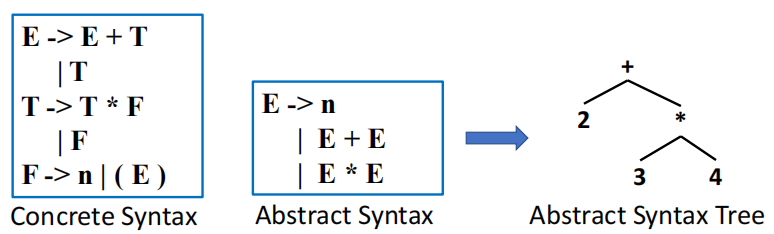 - AST 只保留输入的短语结构,解析中涉及到的优先级、结合性等细节信息都被直接丢弃了