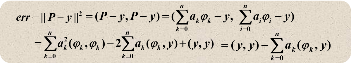寻找一个广义多项式 \(P(x)\),使得误差 \(E = \langle P - y, P - y \rangle = \| P - y \|^2\) 最小化。