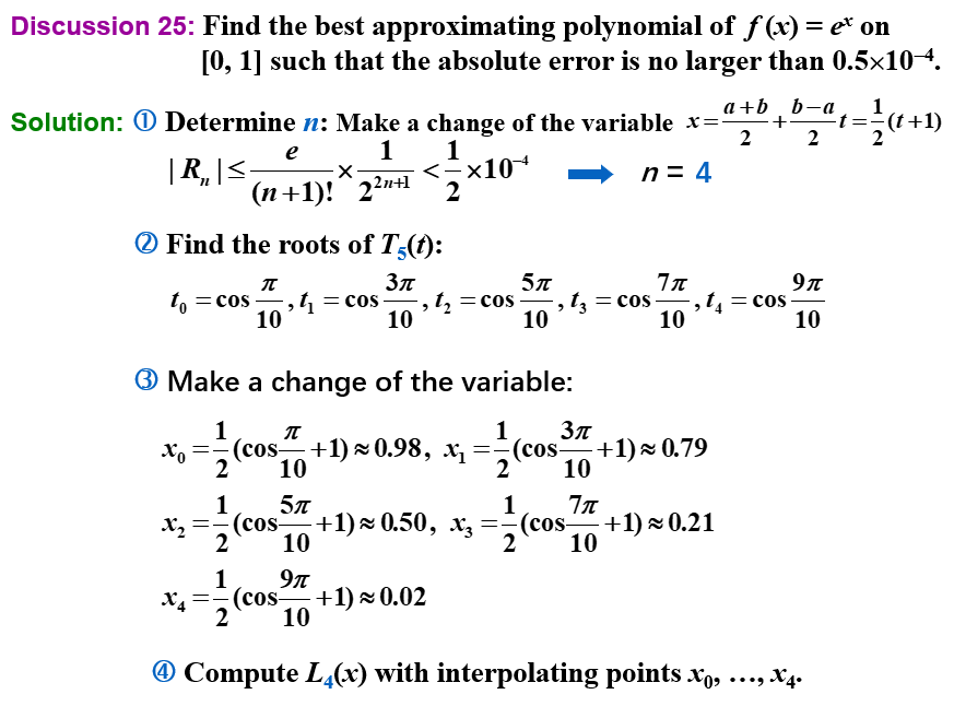 - target 3.0:找到多项式 \(P_{n-1}(x)\),使得 \(\|x^n - P_{n-1}(x)\|_{\infty}\) 在 \([-1, 1]\) 上最小。