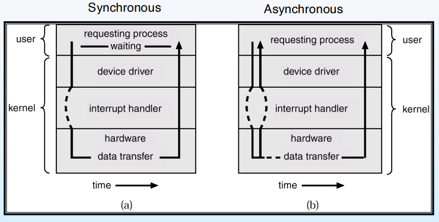 - 用户程序可通过 system call 请求操作系统等待 I/O 完成,而自身先执行其他任务,后续再通过 system call 检查 I/O 是否完成
